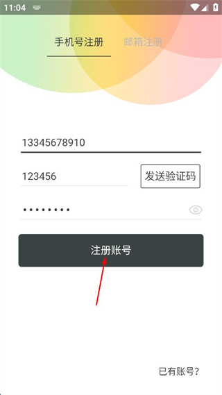 4、點擊注冊賬號按鈕,完成賬號注冊。