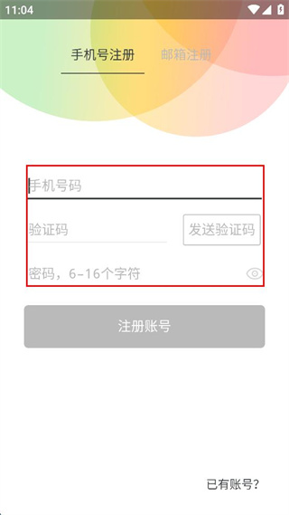 3、在手機(jī)號注冊界面輸入手機(jī)號碼、驗證碼,設(shè)置6-16個字符的密碼。