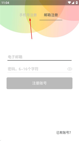 2、在注冊頁面點擊手機(jī)號注冊,切換到手機(jī)號注冊界面。