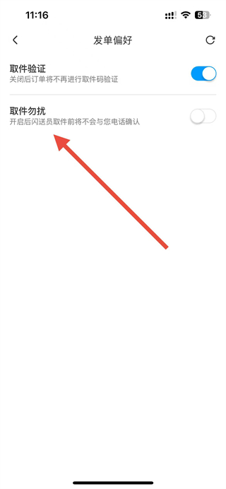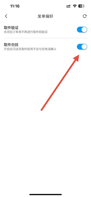 3、在發(fā)單偏好頁(yè)面,找到取件勿擾功能選項(xiàng)。