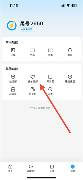 2、在個(gè)人頁(yè)面點(diǎn)擊發(fā)單偏好選項(xiàng),進(jìn)入發(fā)單偏好頁(yè)面。