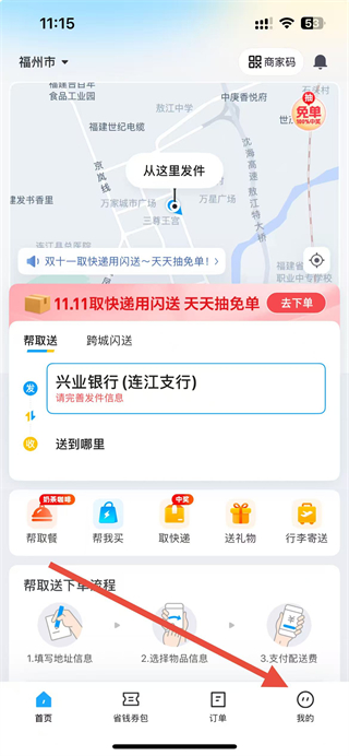 1、在閃送員app首頁(yè)點(diǎn)擊我的選項(xiàng),進(jìn)入個(gè)人頁(yè)面。