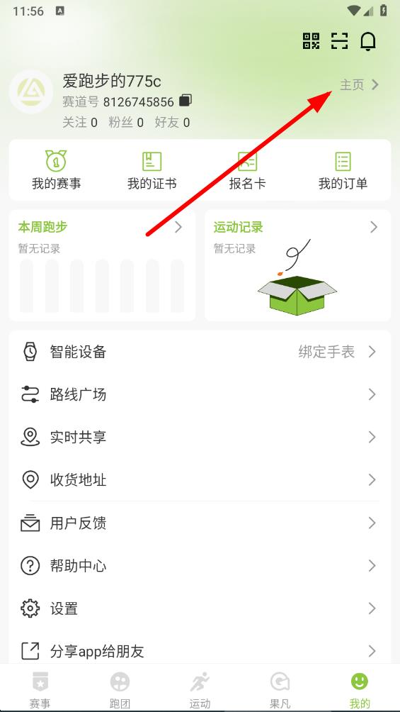 2、在個人頁面中,點擊頭像右側(cè)的主頁選項,進入個人主頁界面。