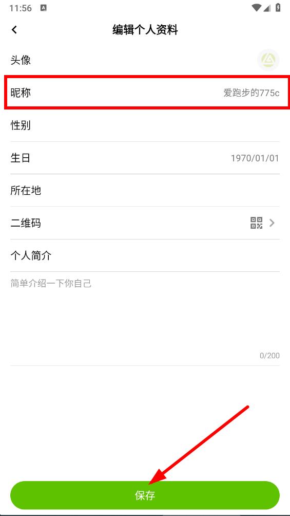 4、在編輯個人資料頁面,點擊昵稱選項,輸入想要修改的昵稱內(nèi)容,完成后點擊底部的保存按鈕,即可成功修改昵稱。