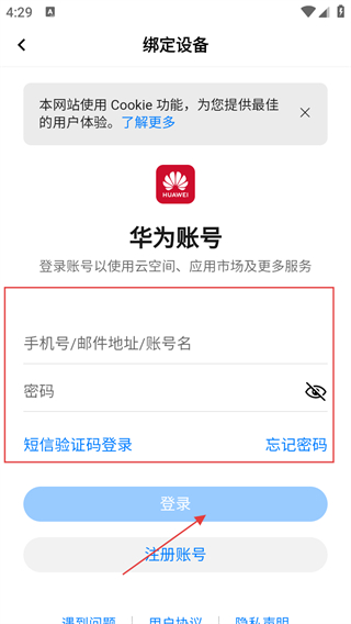 5、輸入賬號信息,點擊登錄,完成華為手表的綁定。