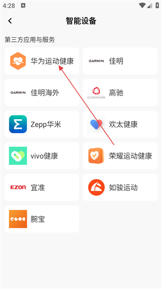 3、在智能設(shè)備頁面,點擊華為運動健康選項。