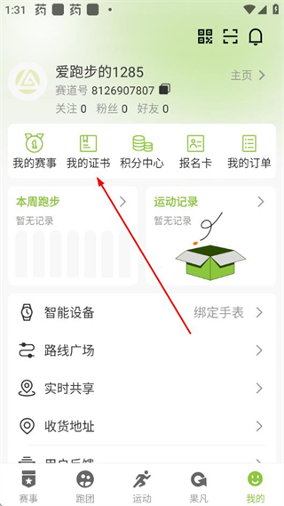 2、在個人頁面點擊我的證書選項,進入我的證書頁面。