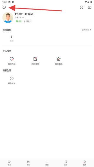 1、打開PP體育App,點(diǎn)擊頁(yè)面右下角我的。