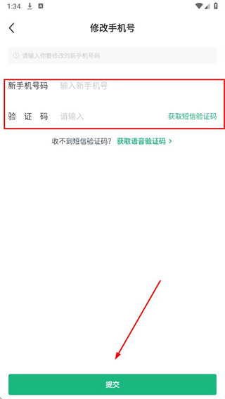4、輸入新手機(jī)號(hào)碼和短信驗(yàn)證碼,點(diǎn)擊提交按鈕,完成手機(jī)號(hào)修改。