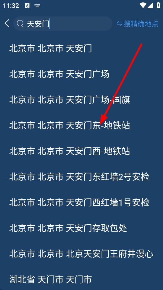4、在搜索結(jié)果里,點擊如北京市北京市天安門東-地鐵站這類具體地點,即可查看該地點天氣。