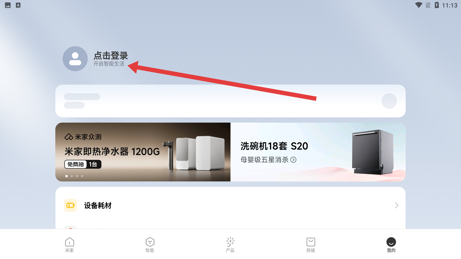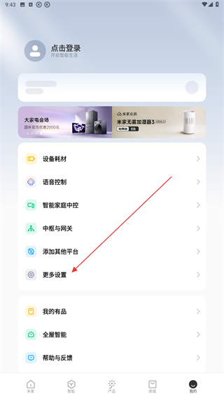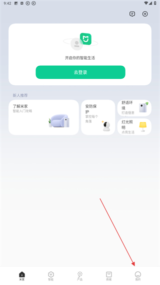 1、啟動(dòng)小米智能家庭APP,進(jìn)入首頁(yè)點(diǎn)擊右下角我的圖標(biāo)。