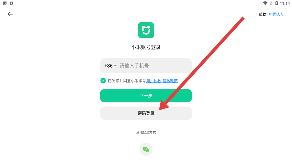 2、在登錄界面中,可以點(diǎn)擊密碼登錄按鈕,切換為密碼登錄方式。