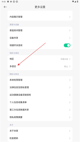 3、進(jìn)入更多設(shè)置的界面內(nèi),點(diǎn)擊多語(yǔ)言的功能按鈕。