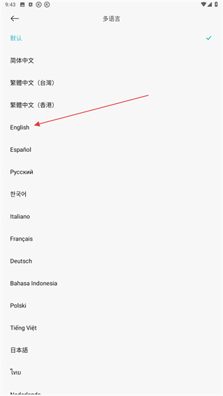 4、在多語(yǔ)言選擇的界面內(nèi),選擇并點(diǎn)擊要更換的語(yǔ)言即可。