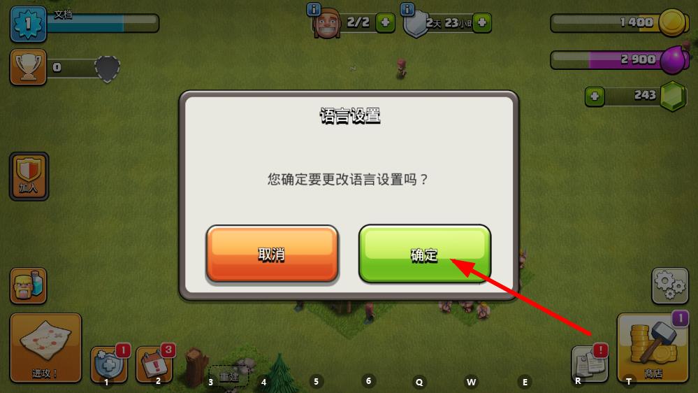 4、在彈出的語言設(shè)置確認(rèn)框中,點擊確定按鈕,即可將游戲切換為中文版。