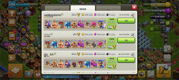 部落戰(zhàn)/沖杯兵種→日常打資源兵種