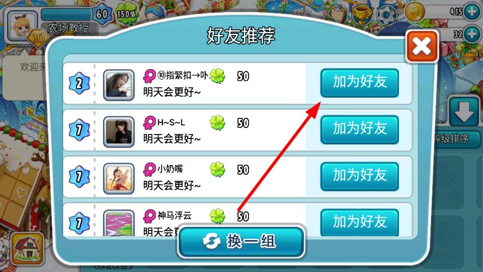 3、在彈出的好友推薦列表里,瀏覽推薦好友的信息,找到想添加的好友后,點(diǎn)擊其對(duì)應(yīng)的加為好友按鈕。