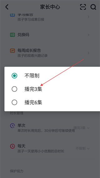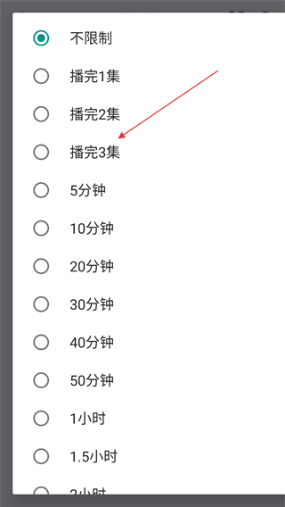 4、再次進(jìn)入時(shí)間選擇的界面內(nèi),選擇播完3集即可設(shè)置成功。