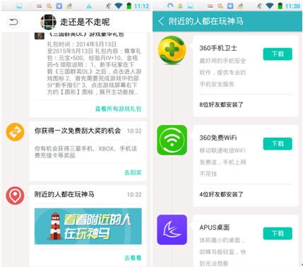 1、好友在玩 :借助好友通訊錄,好友手機中的APP一目了然;