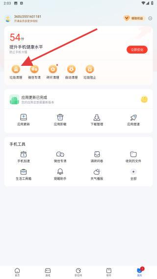 2、在我的頁面內,點擊垃圾清理的按鈕。