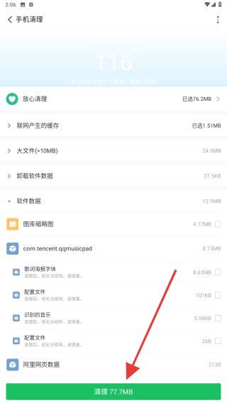 3、軟件會檢測手機中的垃圾,再點擊清理的按鈕。
