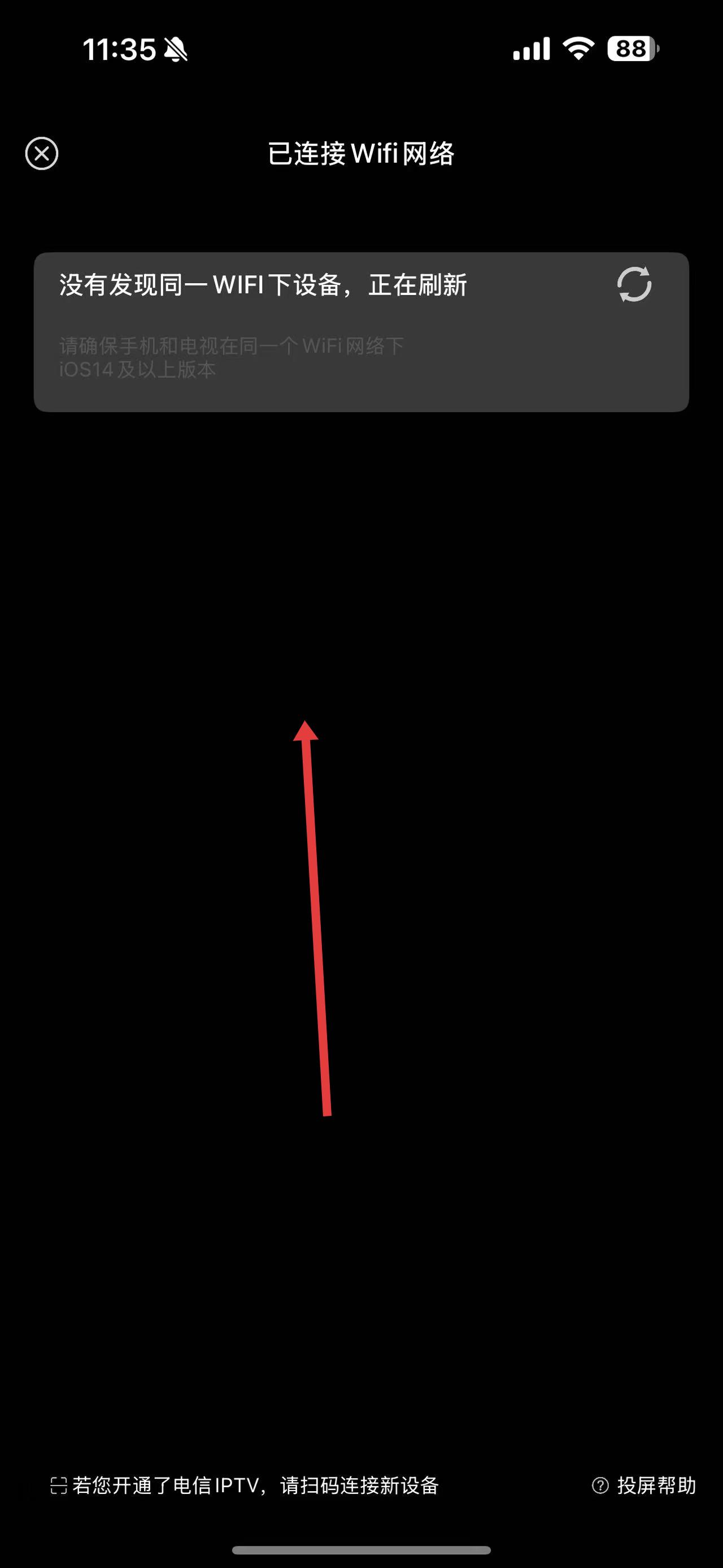 3、在搜索結(jié)果中選擇自家電視設(shè)備,即可完成投屏操作;如果未搜索到設(shè)備,可根據(jù)提示檢查網(wǎng)絡(luò)或刷新搜索。