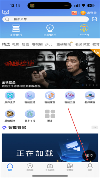 1、啟動i視應(yīng)用,進(jìn)入時點(diǎn)擊智能家居的按鈕。