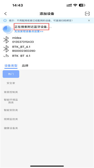 3、在添加設(shè)備的頁面內(nèi),呈現(xiàn)正在搜索藍(lán)牙設(shè)備。