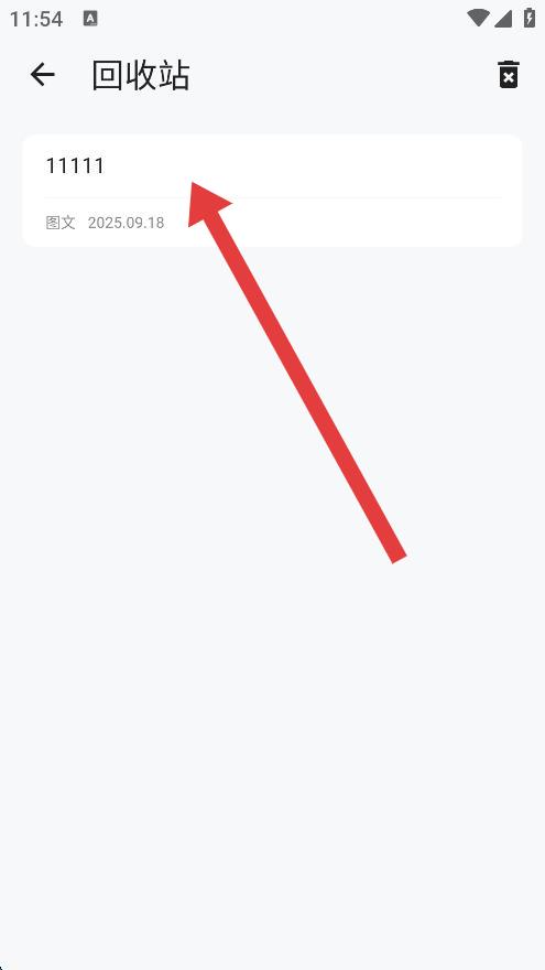 3、在回收站界面,找到需要恢復(fù)的筆記內(nèi)容,點(diǎn)擊該條筆記。