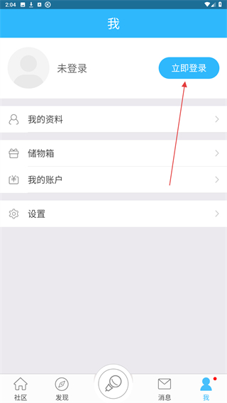 2、進(jìn)入我的界面內(nèi),點(diǎn)擊正上方未登錄右側(cè)立即登錄的按鈕。
