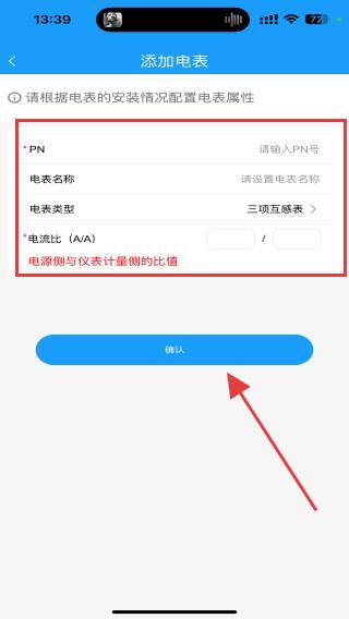 4、進入添加電表的界面內(nèi),輸入PN號、電表名稱,再點擊確認的按鈕即可。