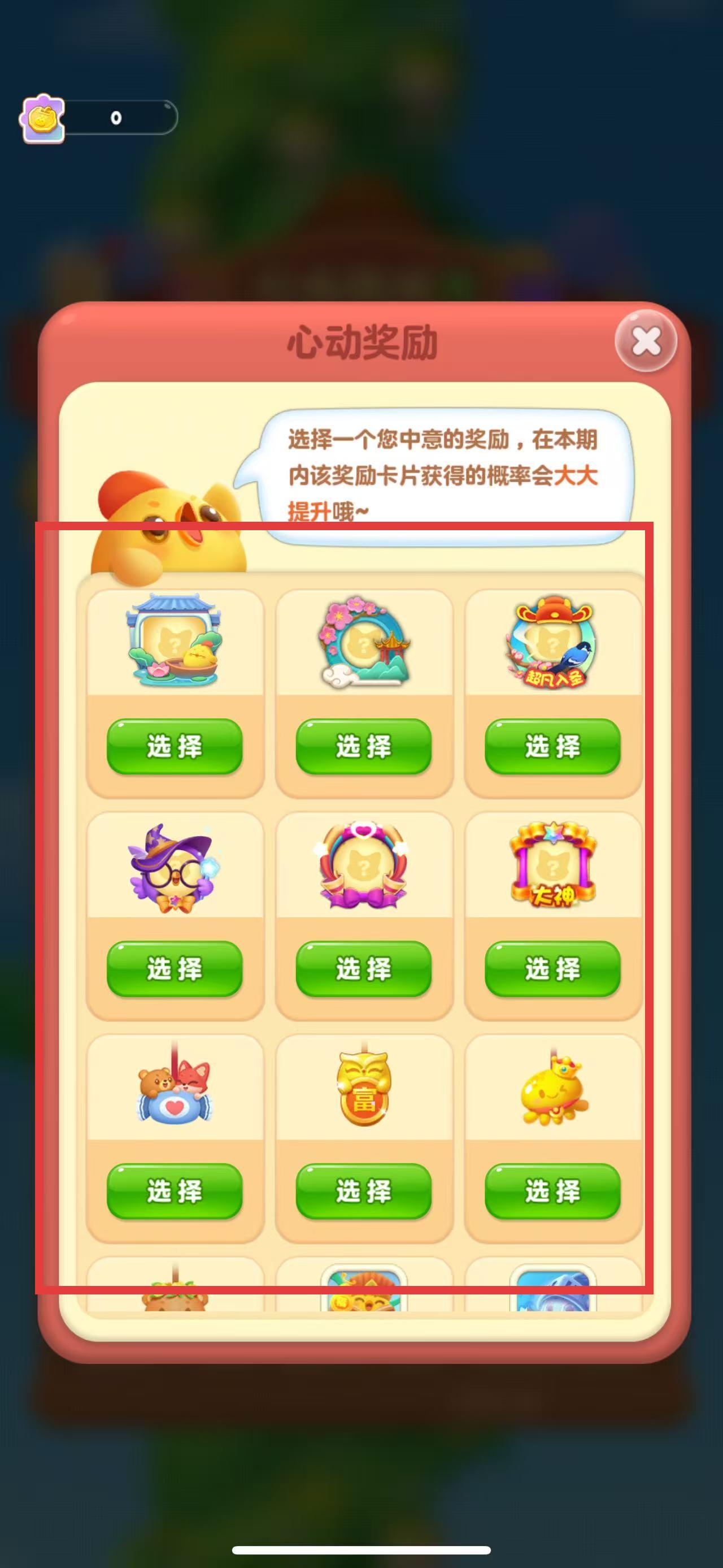 3、在心動獎勵界面里,選擇自己想要的獎勵,點擊對應(yīng)獎勵下方的選擇按鈕,按要求完成兌換操作。