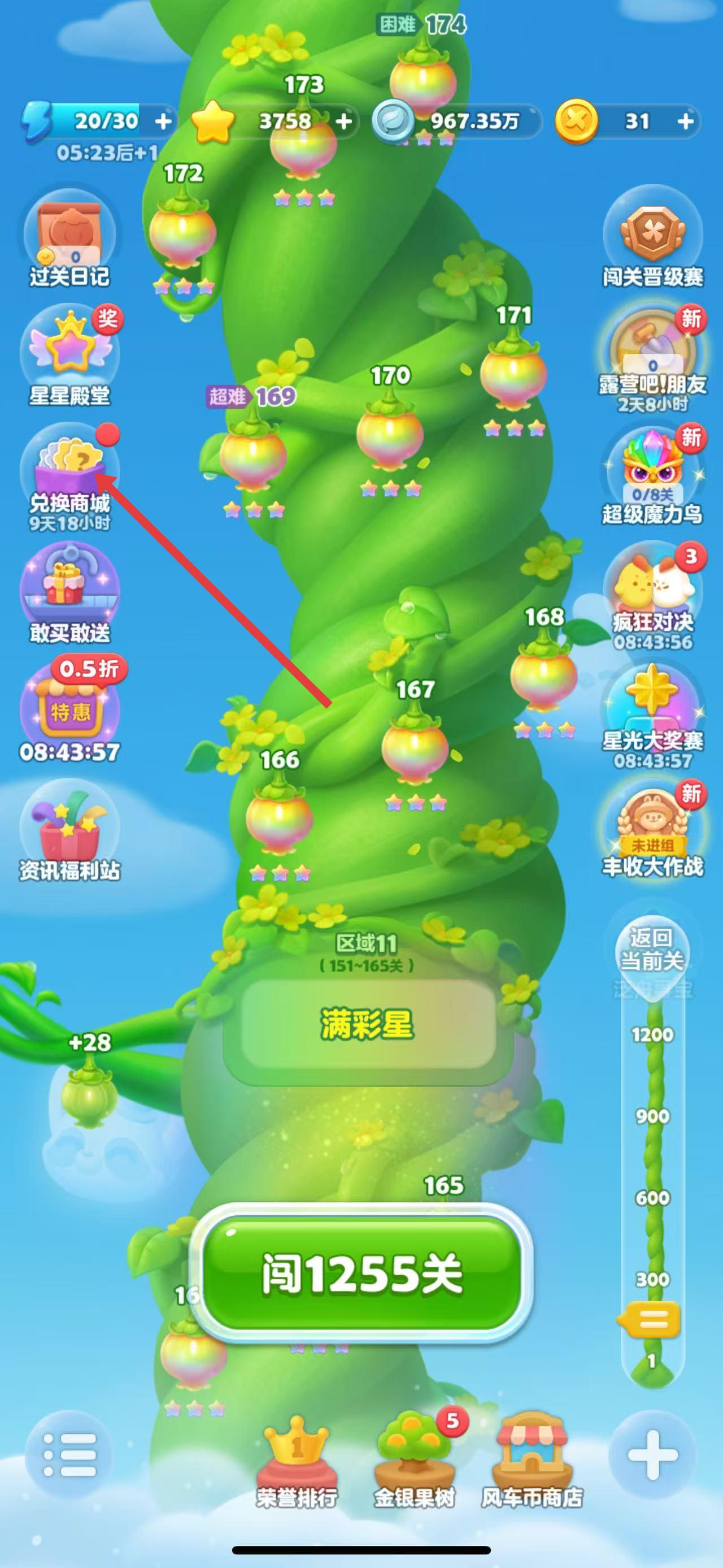 1、打開開心消消樂游戲,點擊主界面左側(cè)的兌換商城圖標(biāo),進(jìn)入兌換商城頁面。