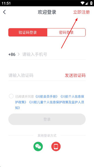 3、在歡迎登錄界面點擊右上角立即注冊選項,進入注冊信息填寫頁面。