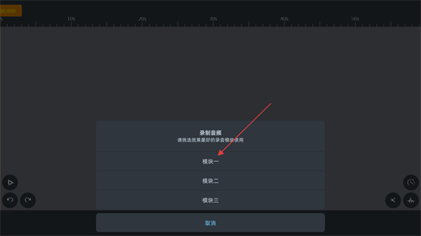 4、在彈出的錄制音頻選項中,選擇模塊一即可進入錄制頁面。