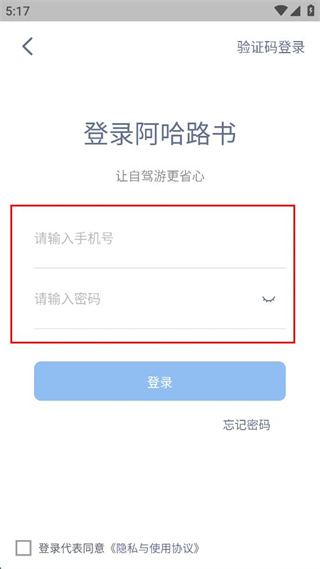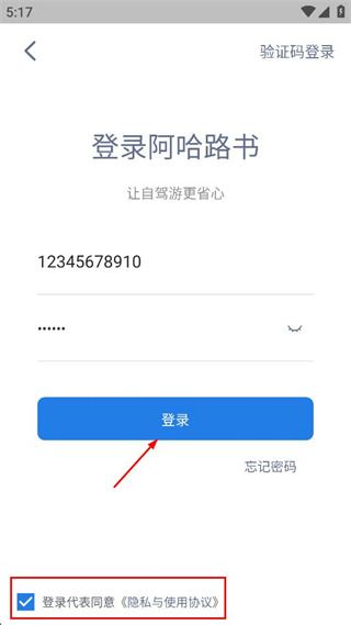 3、在登錄頁面輸入對(duì)應(yīng)的手機(jī)號(hào)和密碼,勾選同意相關(guān)協(xié)議的選項(xiàng)。