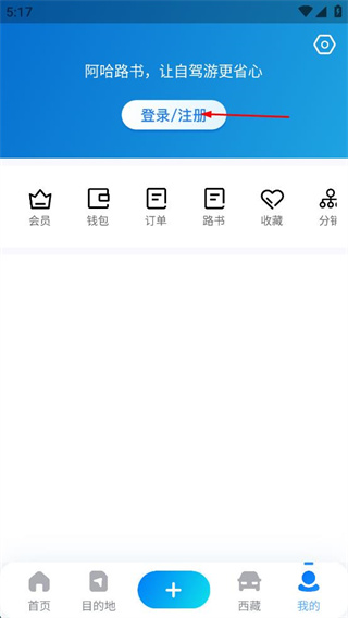 1、打開阿哈路書軟件進(jìn)入首頁,點(diǎn)擊底部我的選項(xiàng),切換至個(gè)人中心界面。