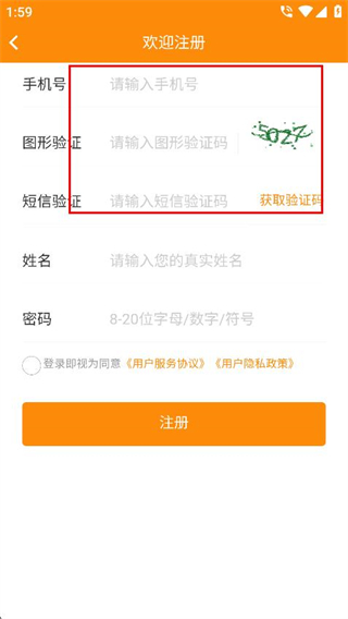 2、進(jìn)入歡迎注冊(cè)頁(yè)面后,輸入手機(jī)號(hào),填寫圖形驗(yàn)證碼和短信驗(yàn)證碼。
