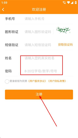 3、輸入姓名,按照要求設(shè)置密碼,點(diǎn)擊注冊(cè)按鈕即可完成賬號(hào)注冊(cè)