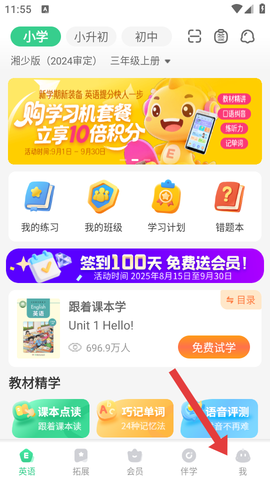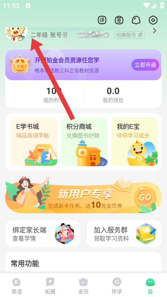 1、在e英語寶主界面點(diǎn)擊我,進(jìn)入個人頁面,此頁面可查看賬號信息。