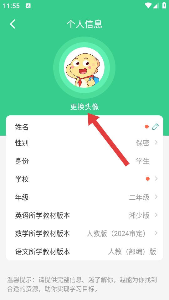 3、在個人信息的界面點(diǎn)擊更換頭像,進(jìn)入用戶頭像選擇的頁面。