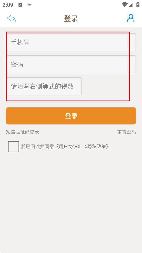 3、在登錄頁(yè)面,依次輸入手機(jī)號(hào)、密碼,并填寫(xiě)右側(cè)等式的得數(shù)。