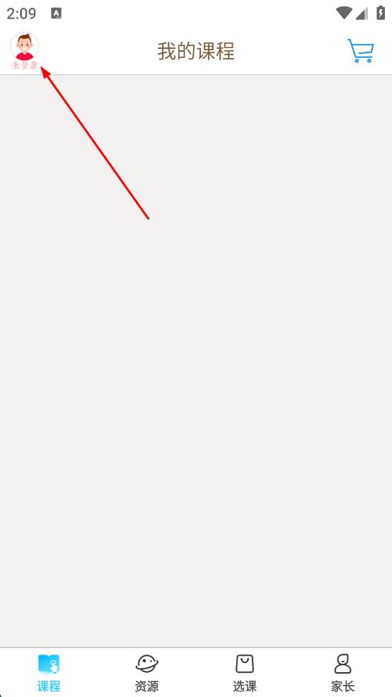 2、在“我的課程”頁(yè)面,點(diǎn)擊左上角“未登錄”標(biāo)識(shí),進(jìn)入登錄頁(yè)面。