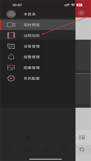 2、在左側(cè)彈出的菜單欄中,用戶需找到并點(diǎn)擊遠(yuǎn)程回放的按鈕。
