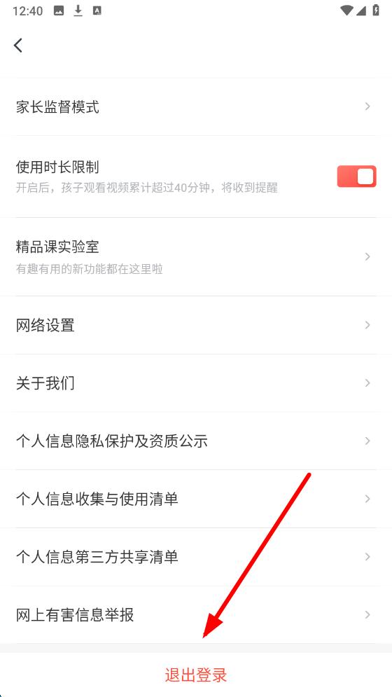 3、在設(shè)置頁(yè)面,下滑至頁(yè)面底部找到并點(diǎn)擊退出登錄的按鈕。