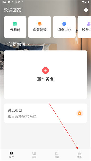 1、打開(kāi)和目攝像頭APP,在首頁(yè)右下角點(diǎn)擊我的圖標(biāo)。