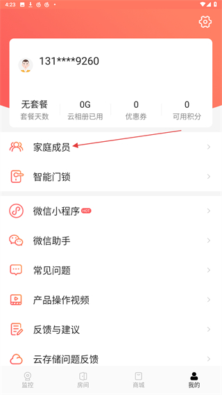 2、進(jìn)入我的頁(yè)面內(nèi),點(diǎn)擊家庭成員的功能按鈕。