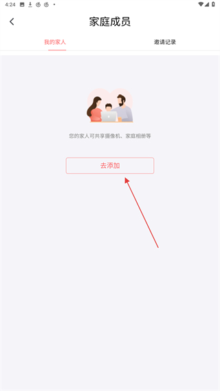 3、進(jìn)入家庭成員的頁(yè)面內(nèi),點(diǎn)擊去添加的功能按鈕。