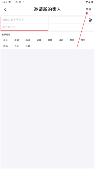 4、輸入手機(jī)號(hào)、備注名,再點(diǎn)擊右上角邀請(qǐng)的按鈕即可。