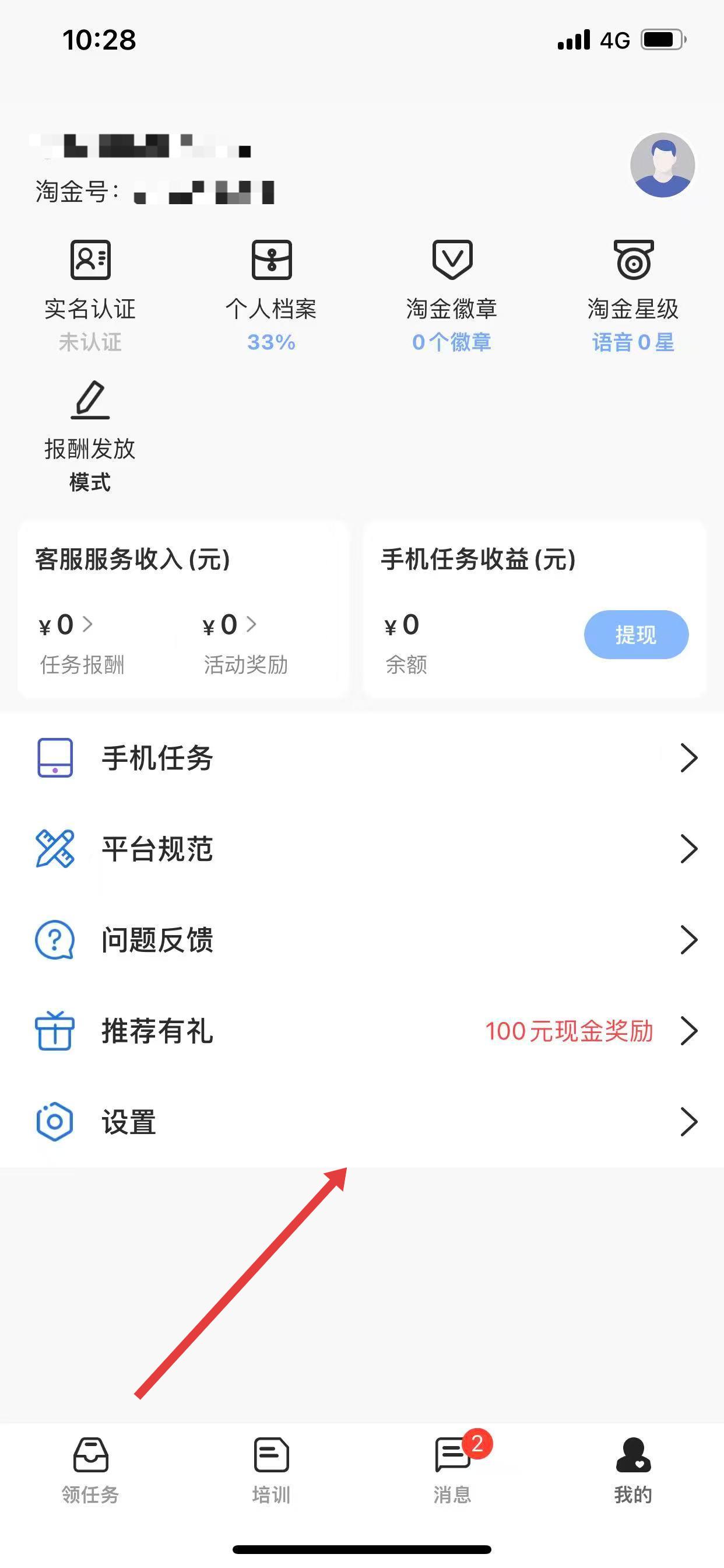 1、打開淘金云客服APP,點擊底部導航欄中的我的。